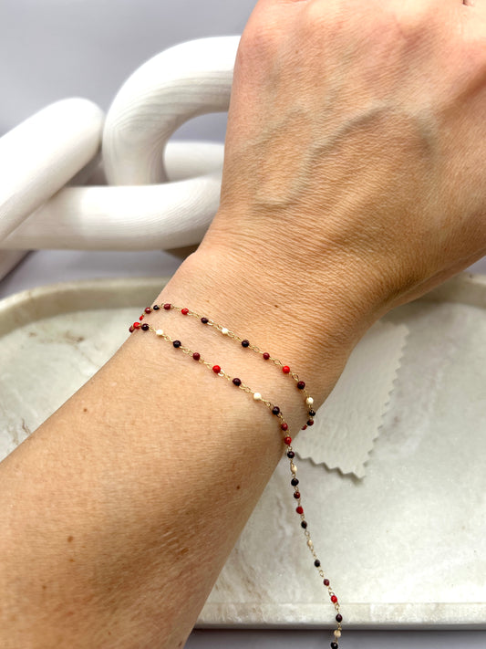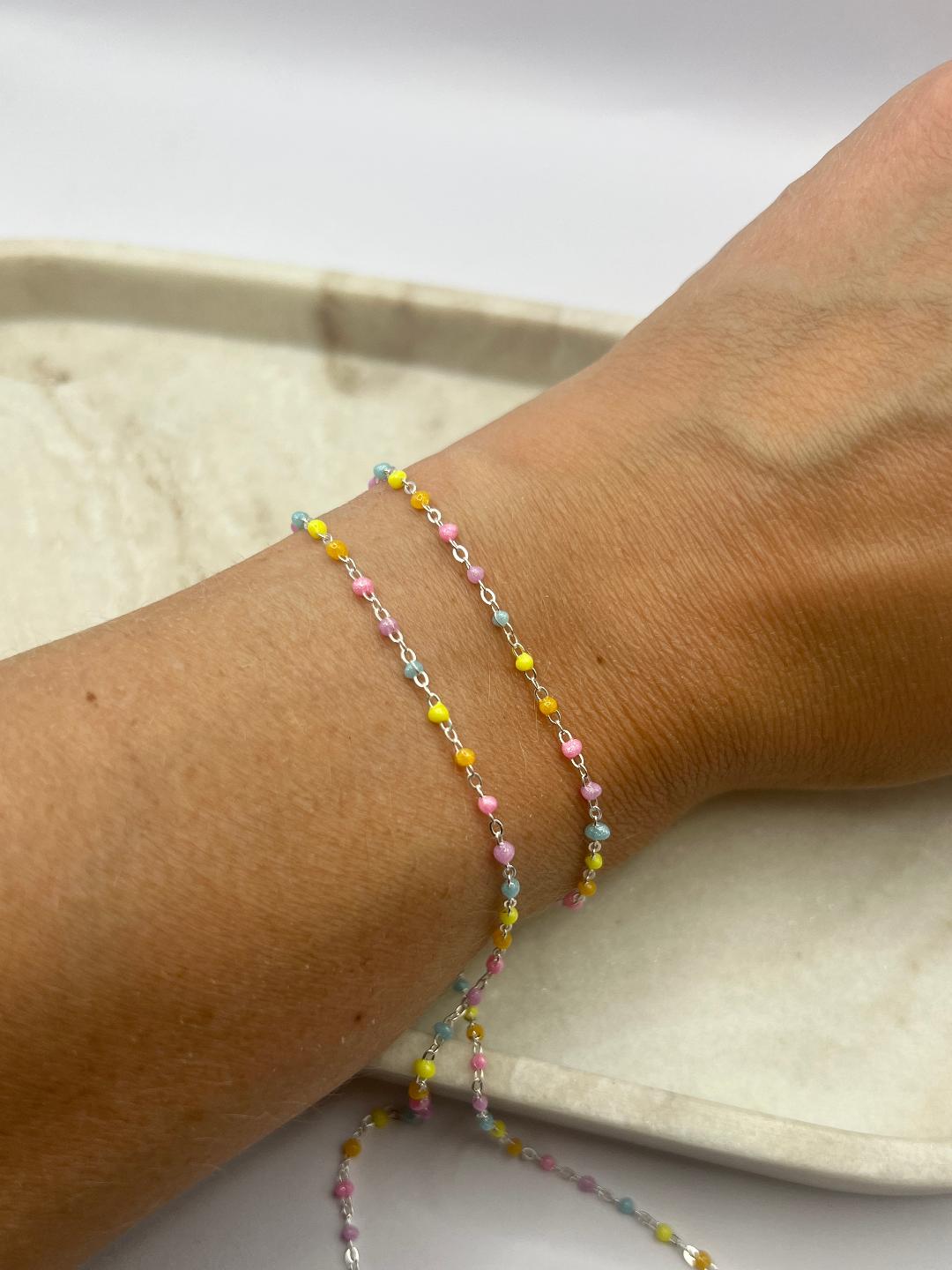 This months featured collection is our coloured chains. Available in a variety of colours and beautiful on their own or teamed with a charm or connector.