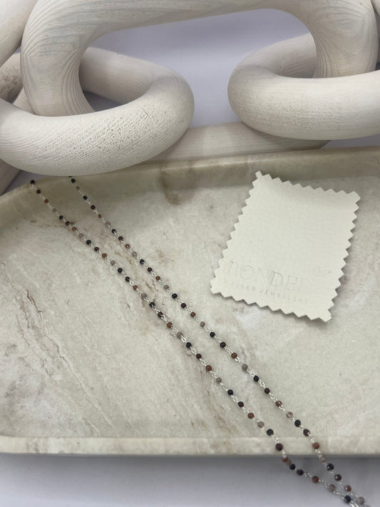 This months featured collection is our coloured chains. Available in a variety of colours and beautiful on their own or teamed with a charm or connector.