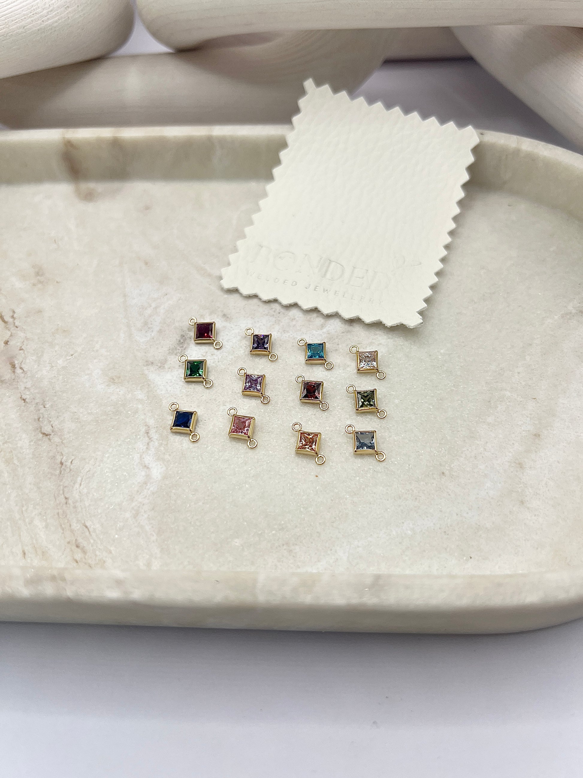 These rhombus shaped birthstone connectors are an incredibly popular choice for personalising bracelets and provide an updated option to the standard birthstone charm.